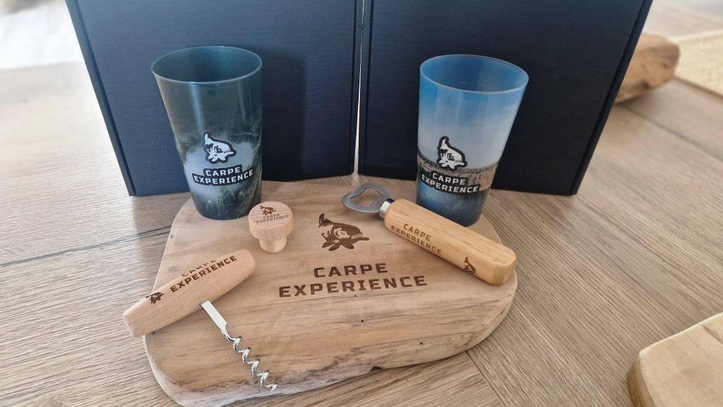 🎁 Le Kit Apéritif comprend : 🍾 1 tire-bouchon personnalisé – élégant, robuste, parfait pour toutes vos sorties pêche 🥤 2 eco-cups Carpe Experience – réutilisables, résistants, design unique
