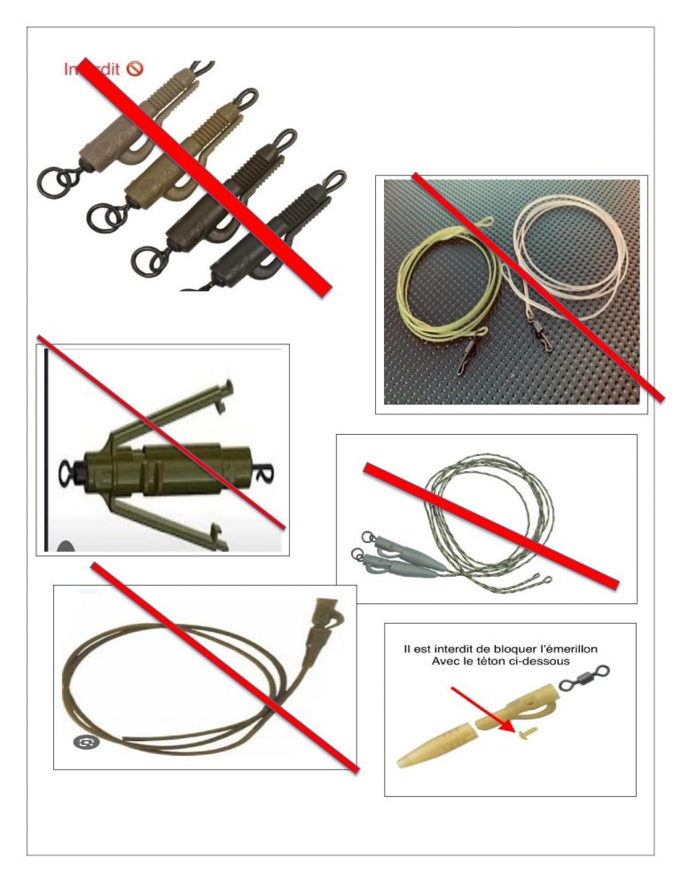 - Leadcore, leader en fluro ou tungstene interdits ainsi que toutes les gaines servent d’anti-emmêleur (voir photo)